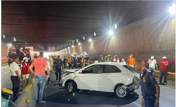 Tras un accidente donde se vieron involucrados cuatro vehículos en el Túnel de la avenida 27 de Febrero de Santo Domingo, tres personas recibieron atenciones medicas en varios centros cercanos a la coalición que provocó pánico entre los que transitaban por la vía.